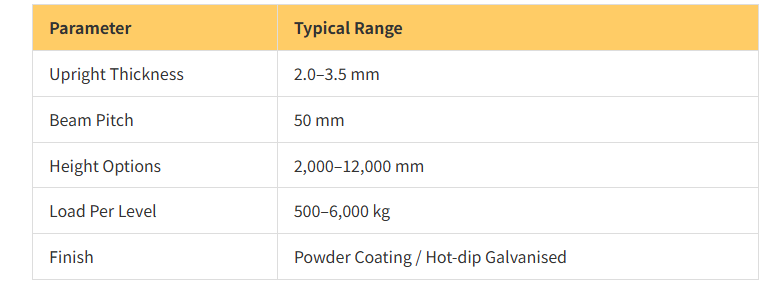 1.Robust Uprights: Cold-formed steel with diamond-punch holes for secure beam locking.
